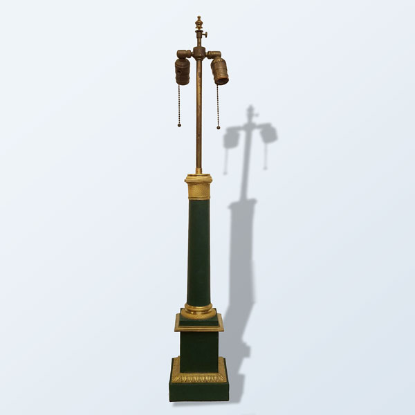 Description: Vintage Column Lamp in Green Tole and Satin Brass