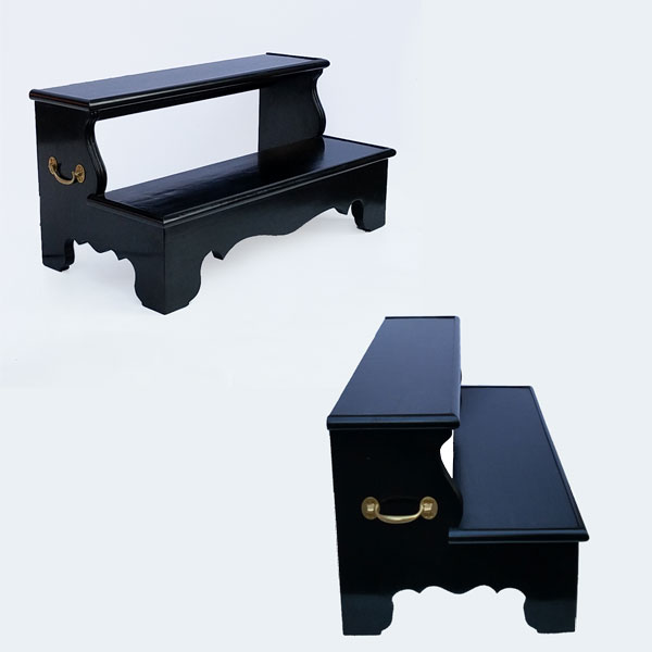 Description: Ebonized Bed Steps with Brass Handles