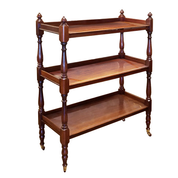 Description: English Three Tier Mahogany Trolley on Brass Casters