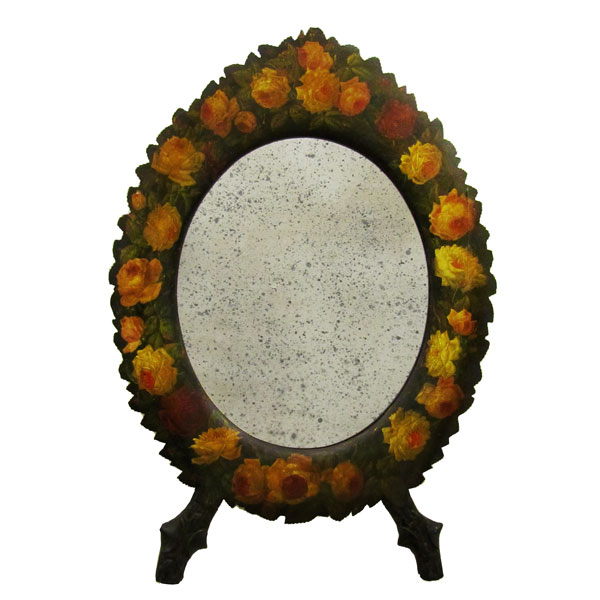 Description: Faux Painted Floral Garland Mirror with Antique Mercury Glass