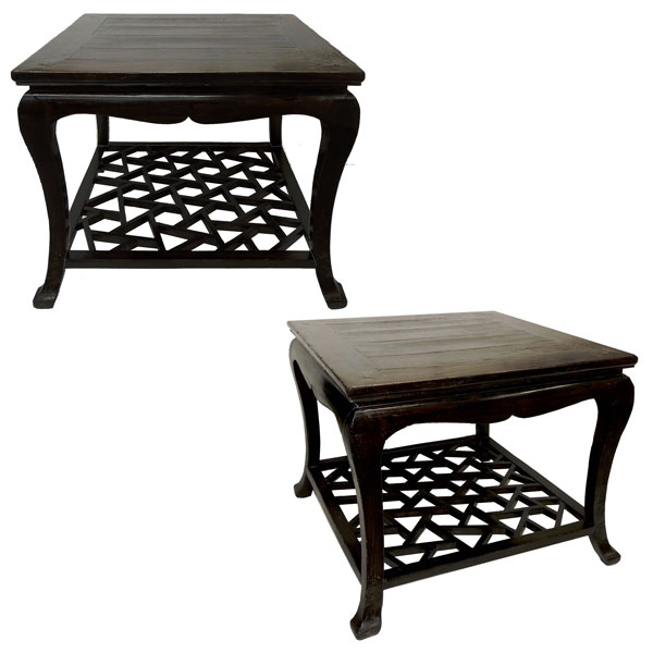 Description: Chinese Export Center Table with Fretwork Stretcher