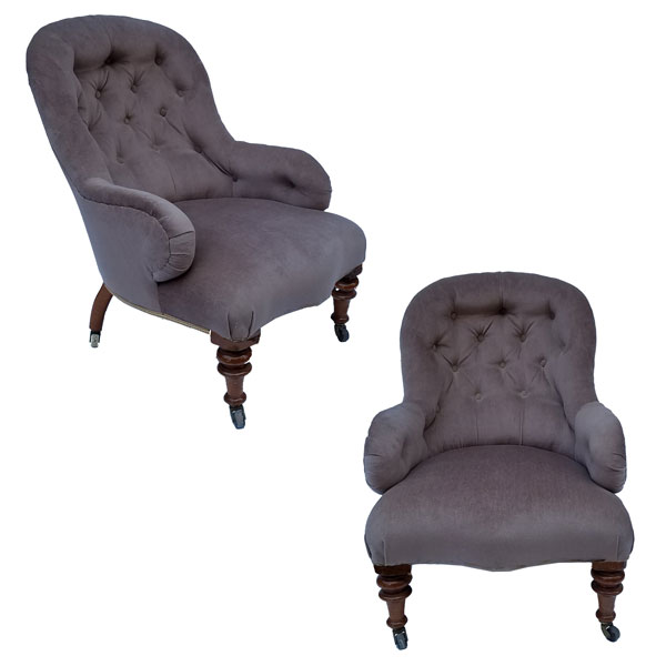 Description: Late 19th Century Tufted Slipper Chair on Casters