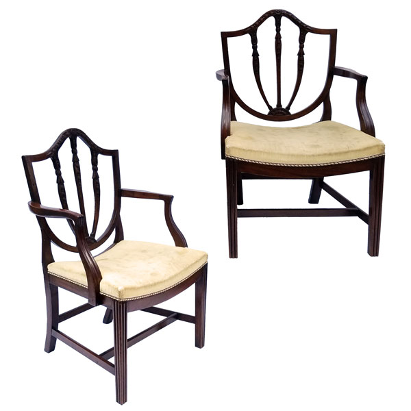 Description: Pair of Shield Back Georgian Style Armchairs in Mahogany