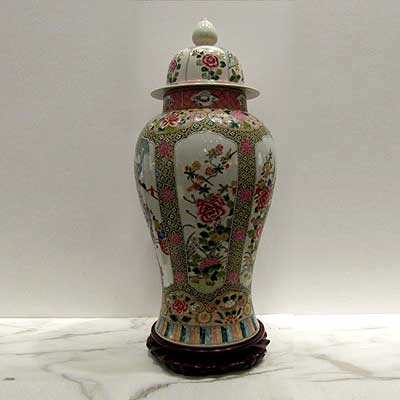 Description: Famille Rose Export Porcelain Temple Jar