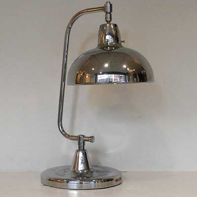 Description: Mid 20th Century Machine Age Swivel Desk Lamp in Chrome,with Original Glass Reflector