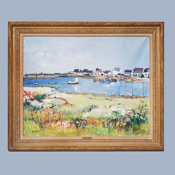 Description: Yolande Ardissone, "Le Petit Pont". French, Mid 20th Century Oil on Canvas in Gilded Frame